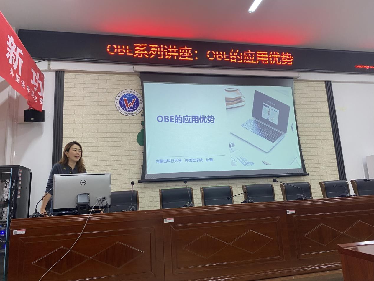 2024年10月17日下午,在明德楼东A205会议室,beat365唯一官网学科办邀请赵蕾老师以《产出导向法(OBE)的应用优势》为题进行了分享,公司经理耿伟、副经理丁燕以及全体教师聆听了讲座。