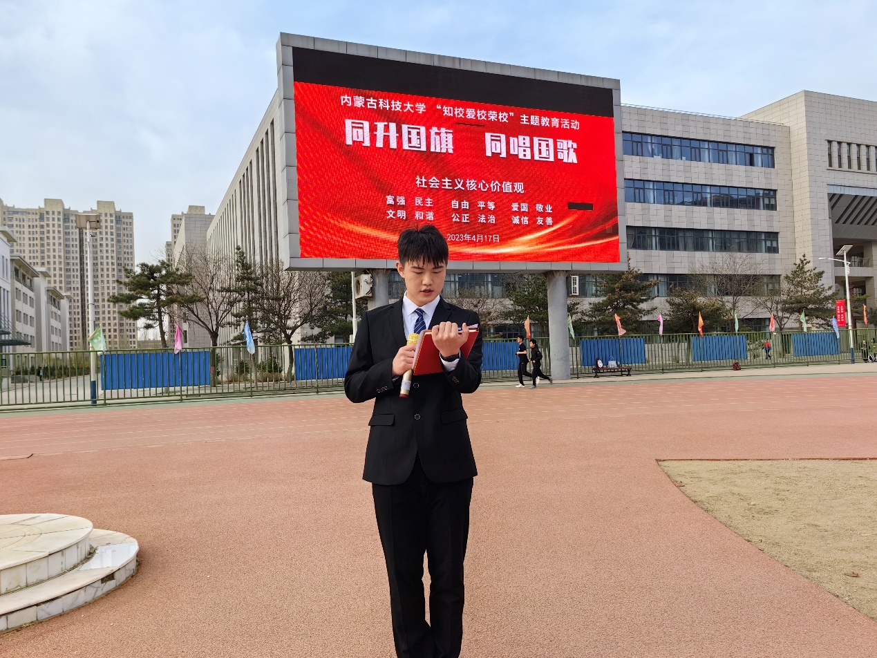 升旗仪式结束后,beat365唯一官网20级英语专业的袁帅同学进行了以“将青春融入时代洪流”为主题的国旗下演讲。
