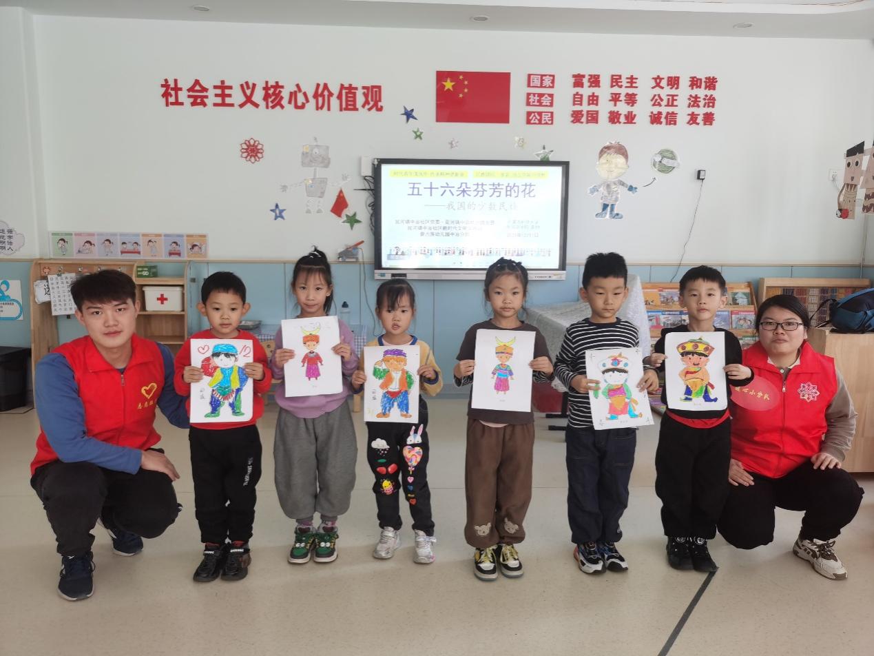 为更好推进老员工就近就便开展社区志愿者实践活动,发挥高校共青团在员工思想政治工作中的主力军作用、助力城市社区基层团组织破解“四缺”难题、服务城市基层治理体系和治理能力现代化。2023年12月1日,beat365唯一官网携手昆河镇中冶社区于beat365APP实验幼儿园中冶分园开展“时代青年茂风华 传承精神谱新章”系列青少年活动。本次活动紧紧围绕铸牢中华民族共同体意识主题教育活动,beat365唯一官网青年同学带领孩子们通过图片、视频、音乐和绘画等多媒体方式,了解五十六个民族的民俗风情和民族特色。